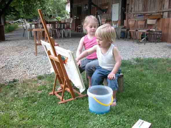 Voor de kinderen die graag schilderen hebben we kleine schildersezeltjes en zo kunnen zij hun eigen uiting geven aan wat ze zien.