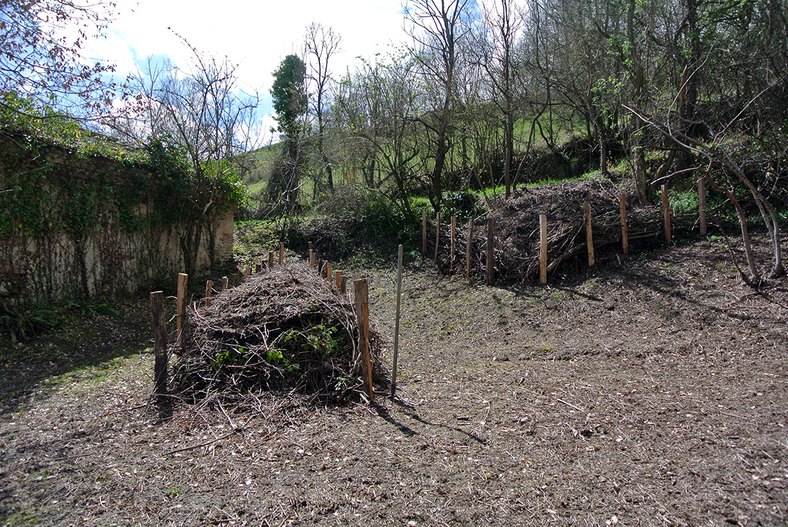 oor allerlei insecten en ander klein spul zoals egels en hagedissen. In het najaar zijn we gestart met het aanplanten van struiken en planten die essentieel zijn in het bestaan van vinders, bijen en overig vliegend kleinnood en Ruud heeft houtrillen gemaakt zodat het kruipend gedierte beschutting vindt.